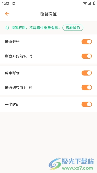 4、接着在弹出的“断食提醒”窗口里,依据自身的需求进行相关设置即可。