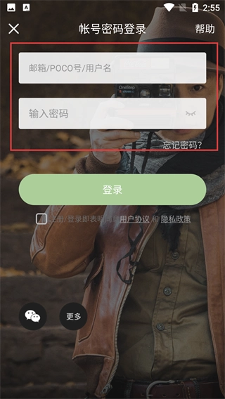 4、切换到【帐号密码登录】界面,填写【邮箱/POCO号/用户名】与【密码】,勾选相关协议后点击登录按钮,即可完成登录操作。