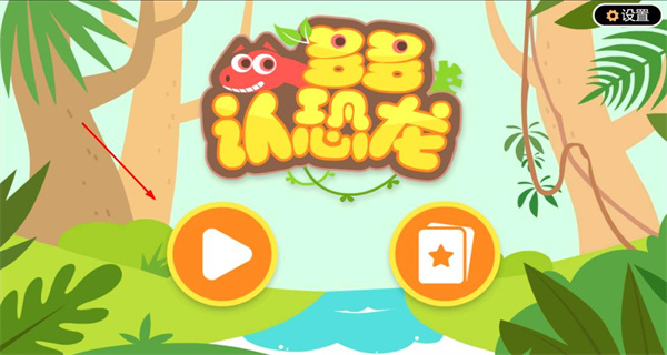 打开软件后,主页面会显示播放按钮和卡片按钮,点击播放按钮,就能进入恐龙认知的互动环节。