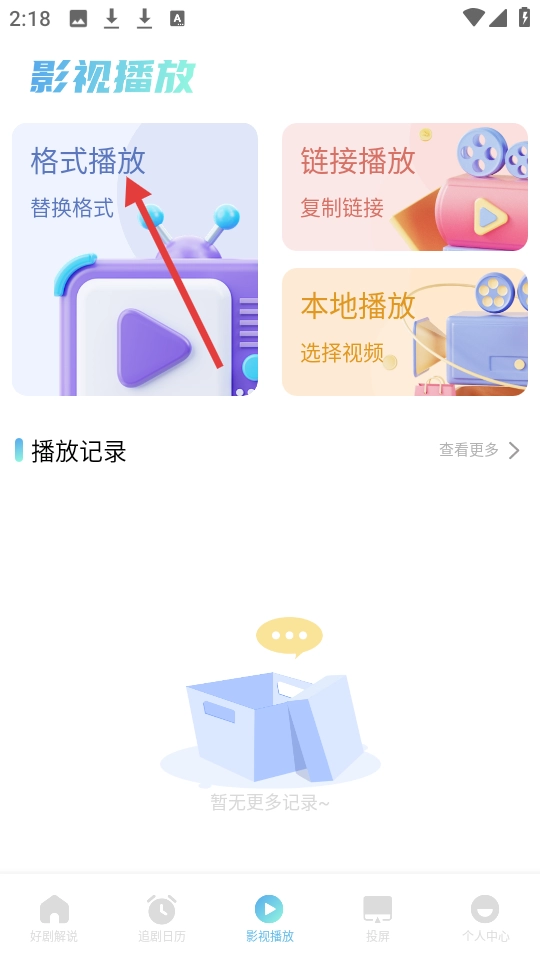 2、在影视播放页面,点击【格式播放】选项,即可进入格式播放流程。