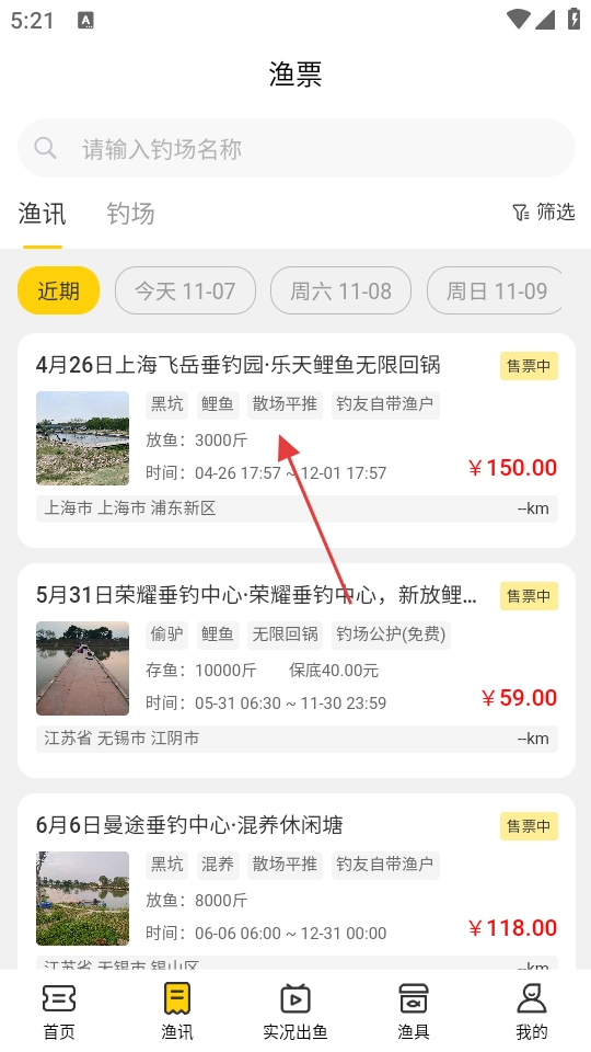 2、进入渔讯页面后,挑选你感兴趣的渔场渔票信息,点击即可进入该渔票的详情页面。