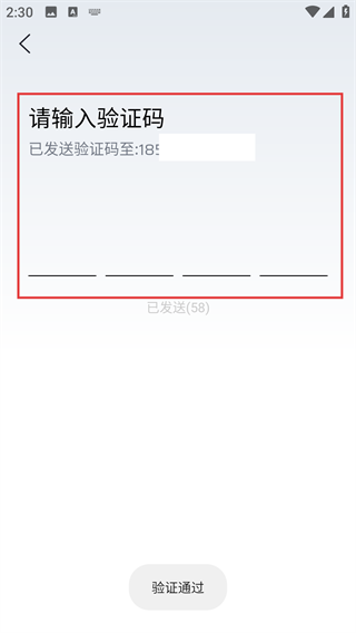 4、进入【输入验证码】页面,把收到的验证码填写到对应的输入框里,操作完成后点击【验证通过】按钮,就能完成登录流程。
