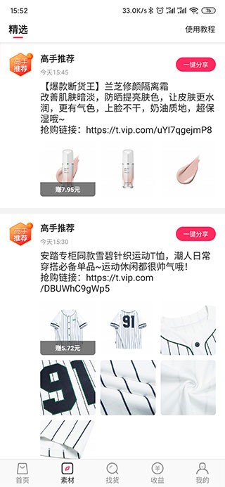 3在素材区域里,聚集了许多用户,他们会推荐不少性价比极高的商品,其他用户也能把这些商品分享给他人。