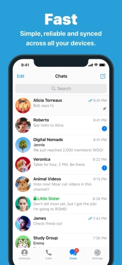 1、纯即时消息——具备简单、快速、安全的特点,且能在所有设备上实现同步。仅两年半时间,活跃用户便已超过1亿。