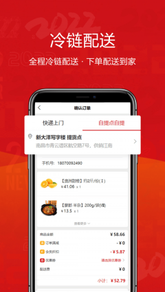 (4)平台还提供贴心的无接触派送服务:配送人员会把商品放进专属冷藏柜,用户自行取货即可,整个过程双方无需接触,安全性很高。