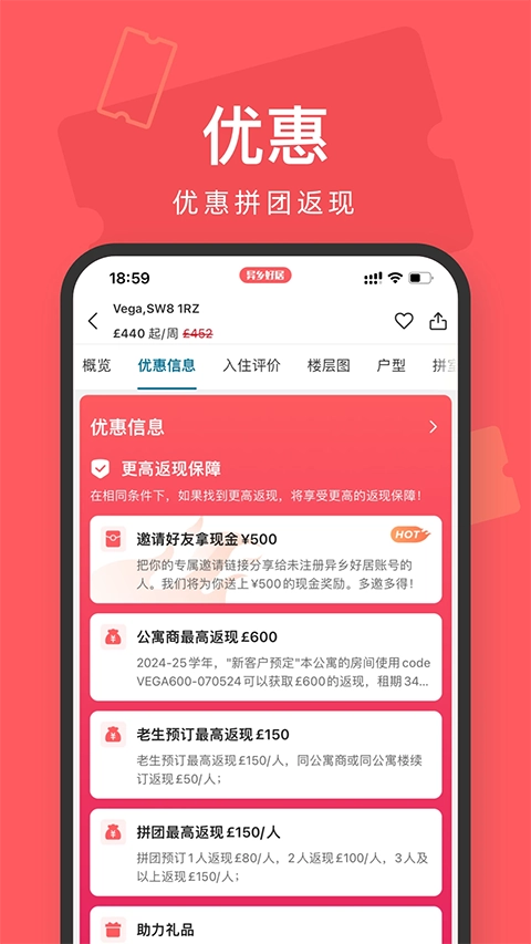 异乡好居是一个专门面向海外留学生的跨国租房服务平台,核心目标是为分散在全球各地的中国留学生提供安全可信的住宿选择。平台汇集了多个国家及地区的优质房源,类型包括学生公寓、私人住宅、短租房间等,借助智能定位与个性化筛选功能,能让用户快速找到契合自身需求的住处。同时,平台会对所有房源信息的真实性进行严格核查,并配备本地化客服团队,全力保障留学生在异国能顺利找到心仪住所,安心完成学业。