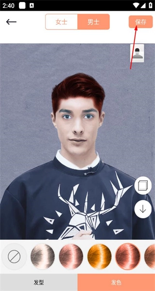 4、挑选喜欢的发色并查看效果预览,确认无误后点击保存按钮,即可完成此次发型与发色的装扮设置。