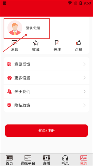 2在党报头条的主页面,点击底部导航栏中的“我的”按钮,即可进入个人中心界面。