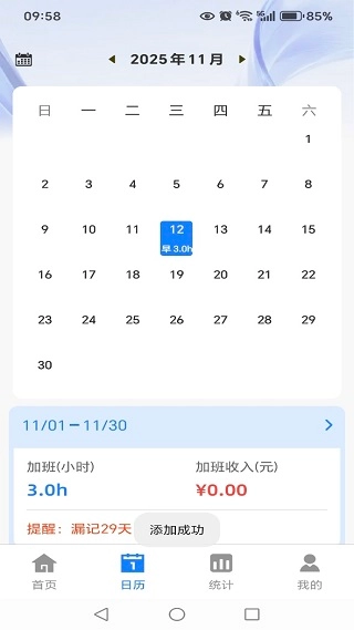 2、采用直观的日历界面,工人可以快速登记加班记录,修改也十分方便,轻松管理考勤数据。