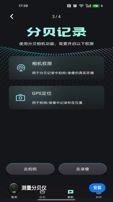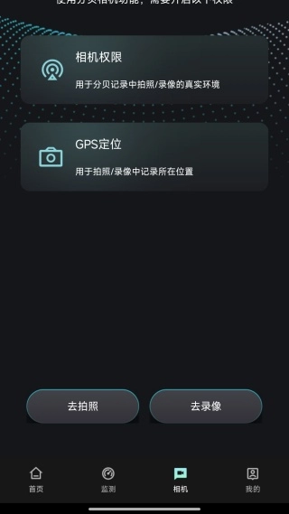 3、使用前请开启相机与GPS定位权限,这样才能顺利开展拍照、录像等环境记录工作。