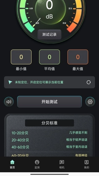 1、首页具备分贝测试与记录功能,可实时呈现测试过程中的最小值、平均值及最大值。