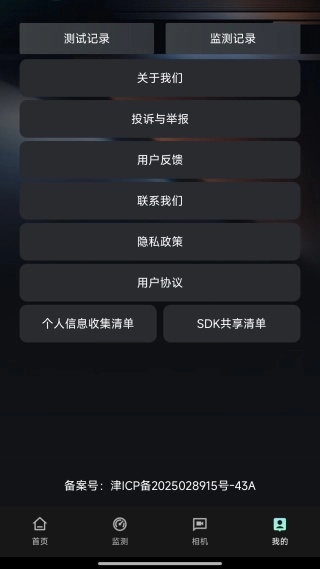 4、支持查看全部历史测试与监测记录,使用过程中若遇到问题,可直接点击用户反馈功能。