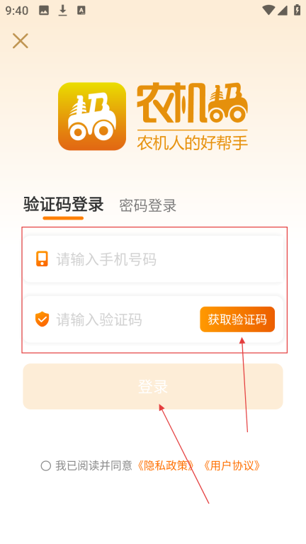 4、在验证码登录页面输入手机号码并获取验证码后,点击【登录】按钮即可完成注册操作。