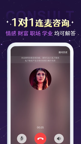 这款应用提供星盘解读服务,新用户可免费使用连麦功能与心仪的达人交流。通过连麦,用户能更清晰地理解自己的星盘,从而深入了解自身性格特质与人生走向。此外,该应用还有合盘解读功能,24小时在线的专业咨询达人会针对情感、生活、职场等方面的问题进行分析解答,他们的专业见解和建议能助力用户在人生道路上收获更多成果。