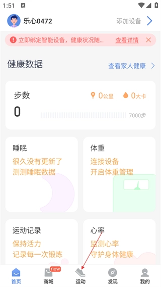 2、在软件首页,点击【运动】选项,即可进入运动功能页面。