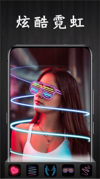 【霓虹特效】为您的照片增添霓虹灯样式的效果,涵盖圆形、方形、三角形、螺旋等多种形状。