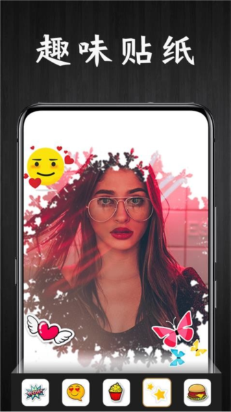 【其他功能】可使用质感滤镜与充满奇幻色彩的可爱贴纸来装点你的照片。