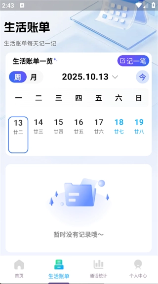 3. 点击页面下方的‘生活账单’,即可开始记录收支情况;