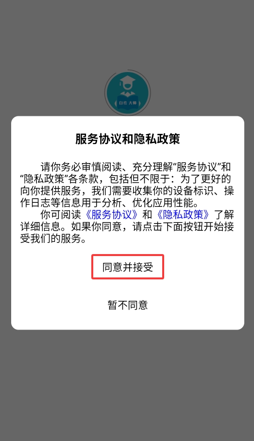 1、第一次启动时会弹出用户协议,点击“同意”按钮后就能进入自考学习平台的主界面。