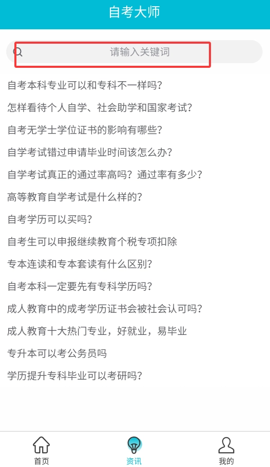 3、资讯板块具备关键词搜索功能,能够帮助用户查找最新的考试政策、考点解析以及备考技巧等相关内容。