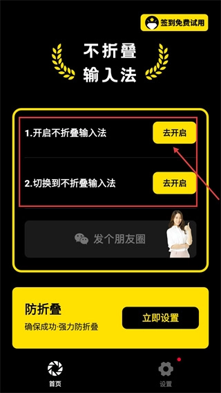 1、在引导页面点击【立即开启】按钮后,即可进入应用的主界面。这款工具的核心功能是“防折叠”,主要适用于各类内容发布的场景。