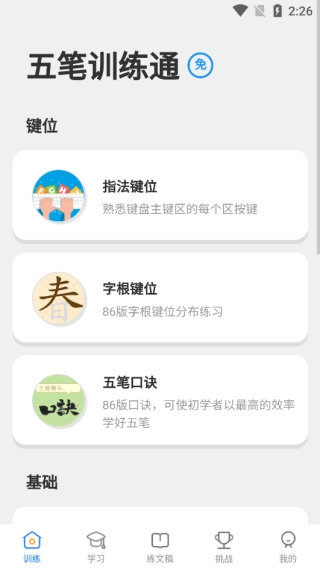 五笔训练通是一款高效实用的多功能五笔学习平台,拥有丰富的在线教学资源,支持随时进行训练学习,帮助你持续提升五笔输入能力。平台涵盖了全面的知识点,所有学习资源均免费开放,可随时开展练习。作为一款功能完备的五笔知识自学软件,它还提供多种教学模式供用户体验。