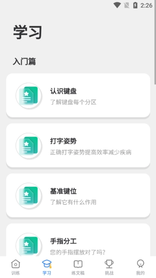 2、难度循序渐进:从基础的键位和字根练习入手,逐步过渡到复杂的词组和文章练习,难度呈阶梯式提升,能适配不同阶段学习者的需求。