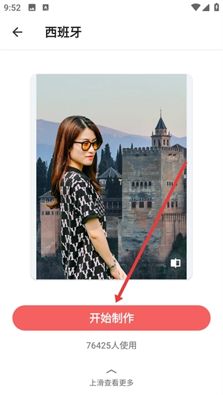 2、选定【西班牙】背景后,点击【开始制作】按钮,进入人像照选择界面。