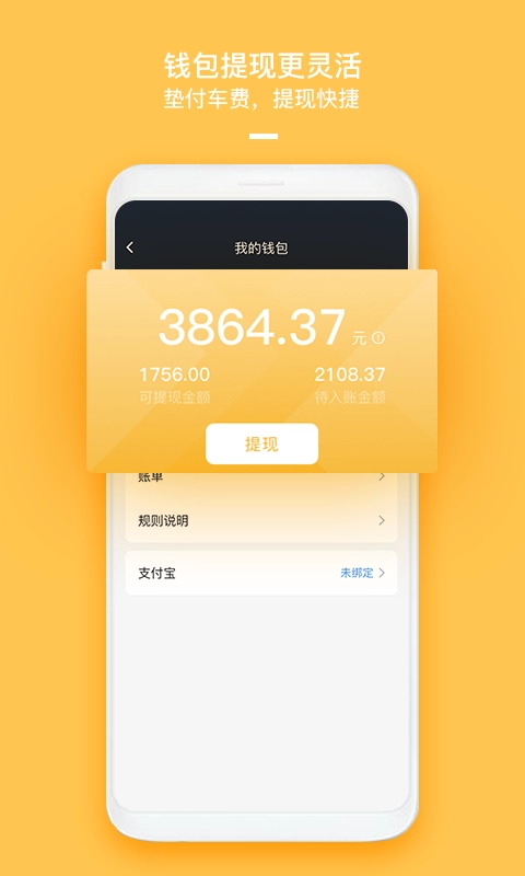 4、钱包界面提现流程简便,分为可提余额与待入账金额,快速到账灵活掌控收入。