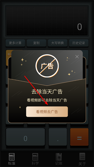 2、在弹出的窗口中点击“看视频去广告”选项,即可消除当天的广告。
