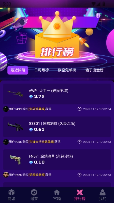 3、在排行榜页面可以查看各类实时排名。