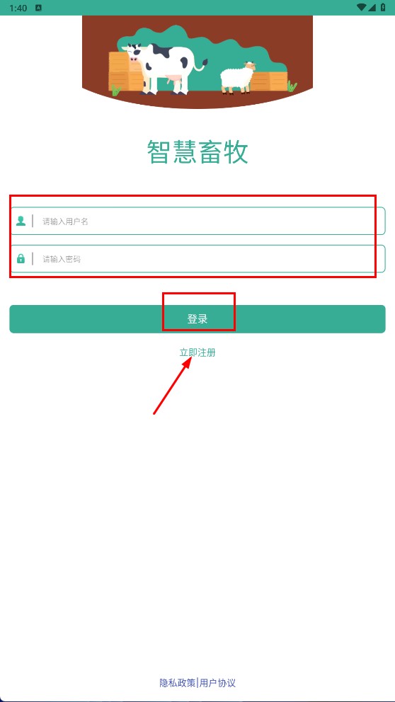 2、选择登录时,输入用户名、密码后点击【登录】完成登录;选择注册时,点击【立即注册】。