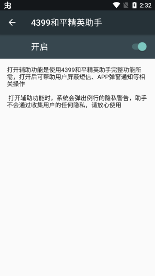 1、启动4399和平精英助手应用,进入辅助功能专区,开启屏蔽功能