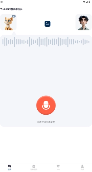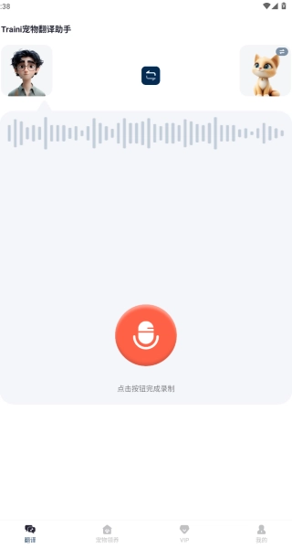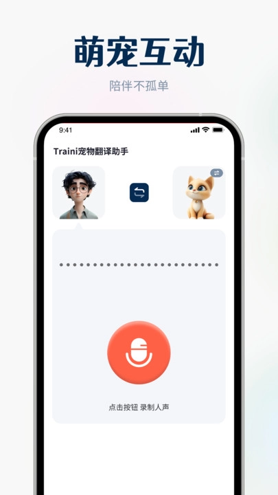 Traini宠物翻译助手是一款人宠互译软件,能够翻译宠物的叫声,将宠物的叫声转换为人类语言,还能够将人类的语言反译为宠物叫声,以此和宠物交流互动。搭载先进的声纹识别与行为分析技术,能精准捕捉宠物叫声、肢体动作中的关键信息。只需打开软件,对准宠物录制叫声或拍摄行为视频,几秒内就能将其转化为易懂的人类语言。