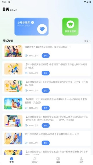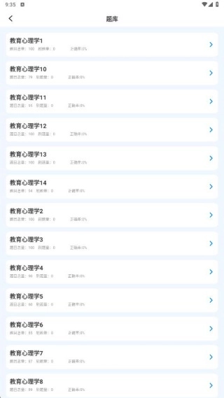 1、安装进入,我们看到心理学和教育学的题库内容。