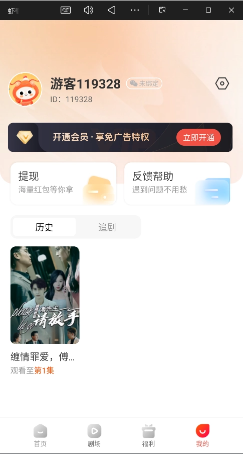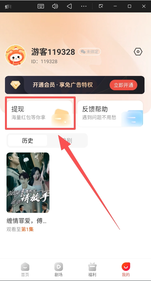 4、提现:当“钱包金额”达到一定数额后,即可在“福利”或“我的”页面操作提现。
