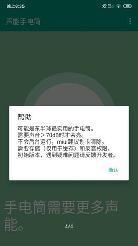 4日常交谈的音量并不会让手电筒开启,用户无需担忧手电筒在不经意间被激活。