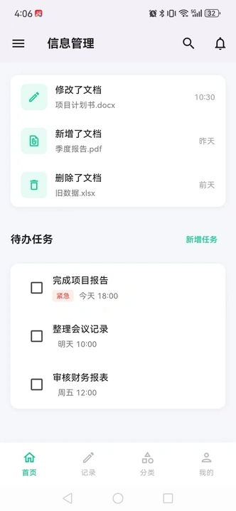 3、在信息分类页面,能够查看统计概览、分类列表等各类内容。