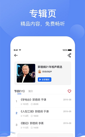 3、节目点播:丰富多样的热门电台节目每天都有更新,只需轻点就能立即播放。
