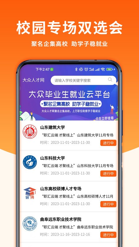 大众人才网是专为毕业季大学生打造的平台,通过线上线下两种模式举办校园招聘会,汇聚海量企业单位与各类岗位,助力大家高效快捷地找到心仪的好工作。