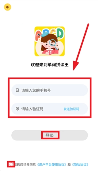 2、跳转至登录界面后,输入手机号与验证码,勾选“我已阅读并同意《用户平台使用协议》和《隐私协议》”,点击登录按钮即可完成操作。