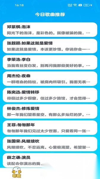 2每首歌曲与音乐都配有精心设计的背景页面,让听众在享受听觉盛宴的同时,也能获得惬意的视觉感受。