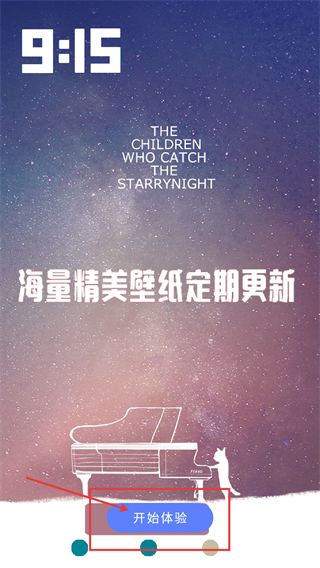 1、进入应用前,可见主题界面,点击【开始体验】即可进入应用,应用提供海量精美壁纸并定期更新。