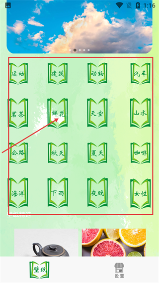 2、进入应用后,在壁纸分类页可看到【运动】【建筑】【鲜花】等分类选项,点击对应分类即可查看该类别的壁纸资源。