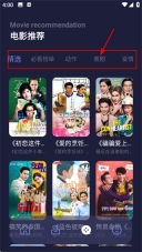 2在影片推荐界面,通过点击分类选项,浏览喜剧类型的影片推荐内容。