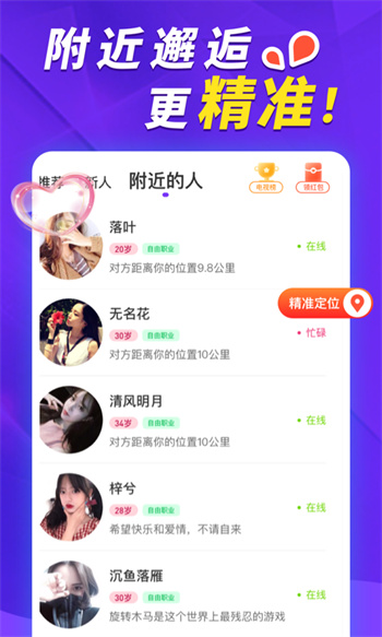 1. 提供同城交友服务,通过这种方式可以结识更多同城好友,只需轻点操作,就能让在线互动更简单便捷。