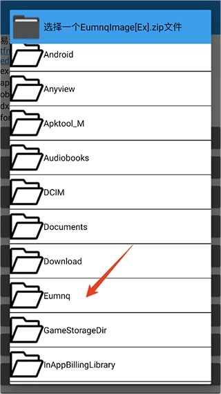 7、接着打开手机的文件存储目录,找到eumnq文件夹,把刚才准备好的数据包导入到这个目录里。