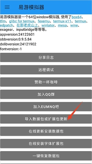 6、接着点击【导入数据包或扩展包更新】,把刚才准备好的数据包导入进来