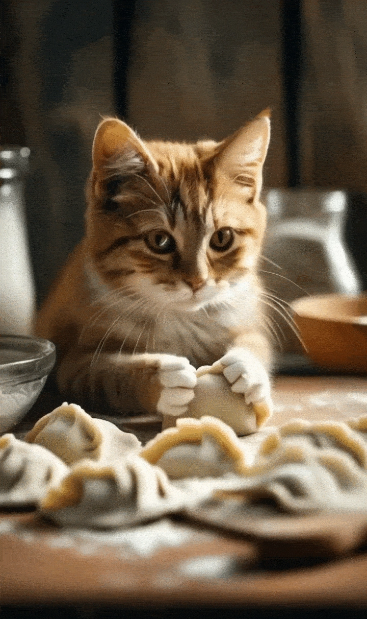 1、在AI图像生成的描述输入框里填写提示词,比如可以输入:“一只小猫在厨房里包着饺子”。