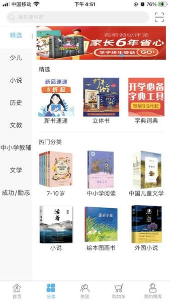 4、完成账号注册后返回首页,点击分类选项进入分类页面,即可选择相应板块浏览书籍。